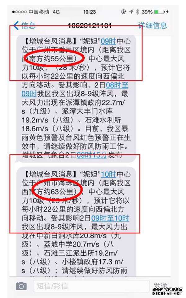 政府不但通過新聞媒體傳達應(yīng)急措施,而且還通過短信群發(fā)平臺向市民發(fā)送防風(fēng)防汛通知。確保做到保平安、保暢通、保民生,并做好救災(zāi)救助準(zhǔn)備工作。同時增城區(qū)還時實群發(fā)臺風(fēng)動向讓市民安心。這一舉措得到廣大市民好評。