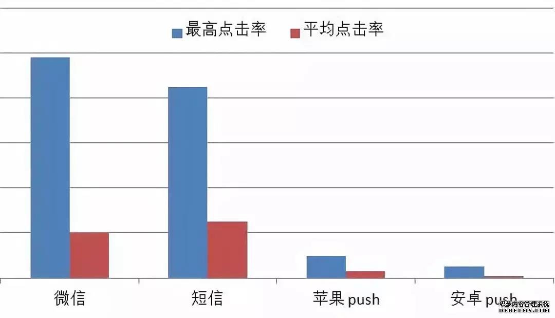 從各渠道的最高點(diǎn)擊率和平均點(diǎn)擊率來看,微信服務(wù)號>短信>蘋果 push>安卓 push; 其中,微信的最高點(diǎn)擊率高于其他渠道,但平均點(diǎn)擊率與短信相比差距不明顯。