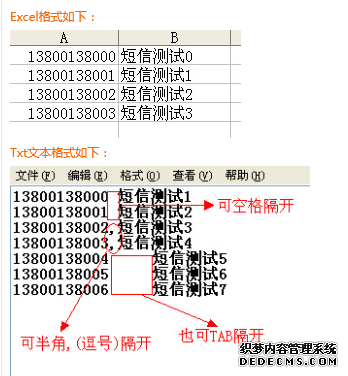 根據(jù)該頁面左邊的操作進(jìn)行發(fā)送短信,這里說的主要是是發(fā)送短信的時(shí)候格式的問題。選擇好導(dǎo)入發(fā)送,TXT或者EXCEl導(dǎo)入方式,然后點(diǎn)擊發(fā)送短信即可,根據(jù)提示操作。