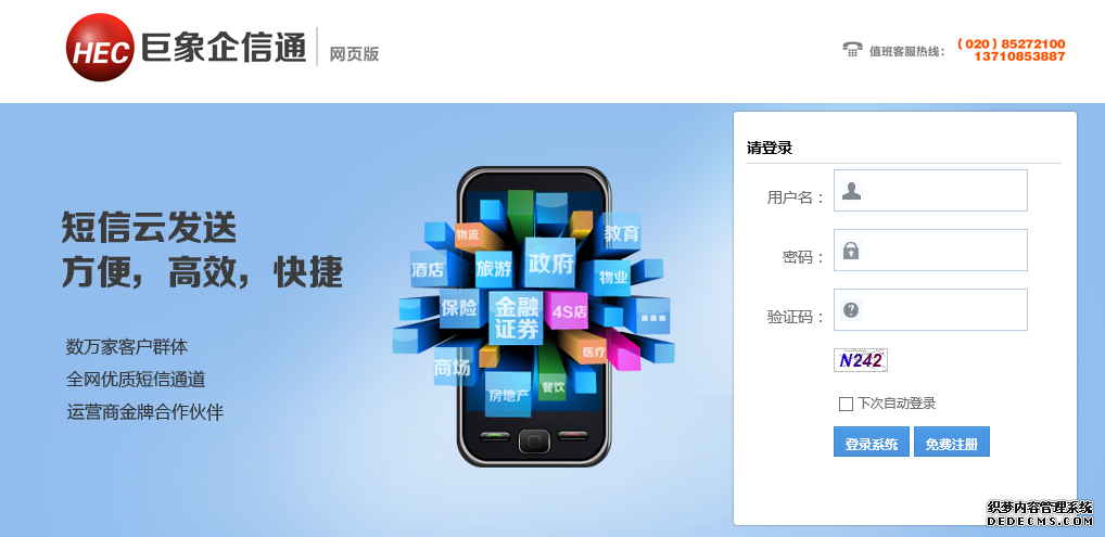 短信群發(fā),彩信群發(fā),短信群發(fā)軟件,廣州巨象計(jì)算機(jī)科技發(fā)展有限公司是一家致力于為企業(yè)提供互聯(lián)網(wǎng)、通訊技術(shù)應(yīng)用服務(wù)和解決方案的高科技公司,具有良好的國(guó)內(nèi)外資金和技術(shù)背景;是國(guó)內(nèi)最早投入研發(fā)企業(yè)短信應(yīng)用和企業(yè)網(wǎng)絡(luò)電視臺(tái)系統(tǒng)的公司之一,業(yè)已成為廣東地區(qū)最大的移動(dòng)商務(wù)產(chǎn)品與解決方案的提供商和優(yōu)秀的電訊服務(wù)品牌企業(yè)。其主要業(yè)務(wù)有: