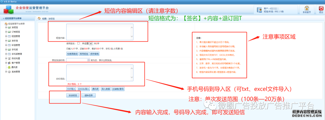 四、提交短信內(nèi)容注意事項(xiàng):