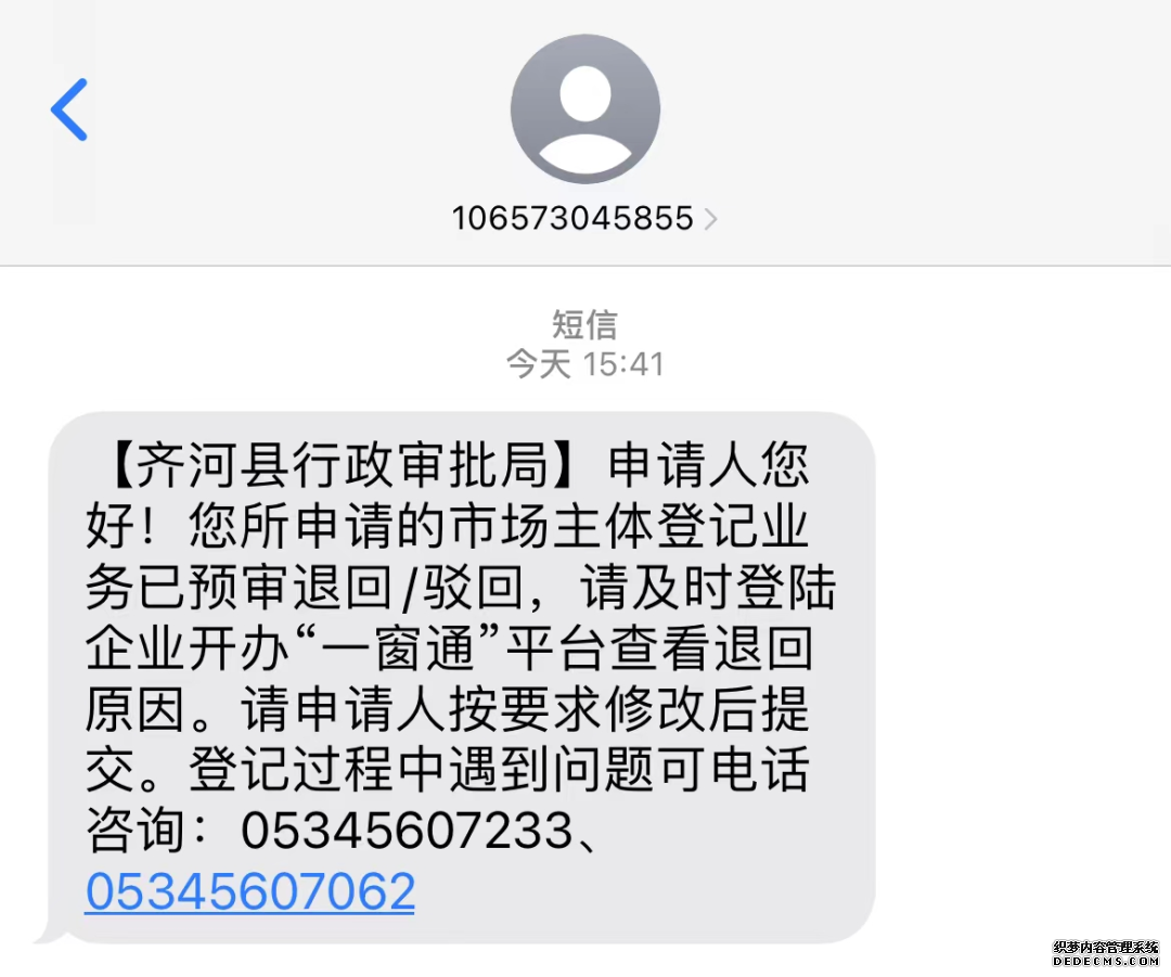 除此之外,如若材料退回需要修改,智能短信數(shù)字人也會向申請人發(fā)送對應(yīng)的短信(如下)。